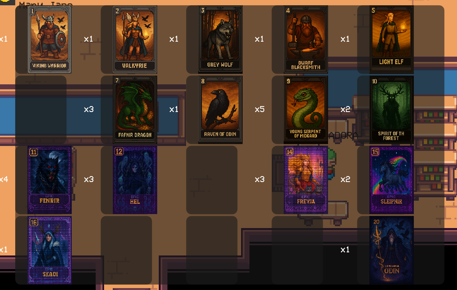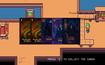 Interact with NPCs by pressing E, open your inventory with I to manage your cards and boosters, and press ESC to cancel actions or exit menus. During special minigames and challenges, use the arrow keys to play and test your skills. Collect, trade, play, and become the ultimate collector of the event!
